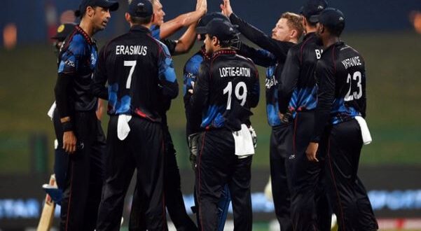 नामीबिया के 27 वर्षीय बाएं हाथ के तेज गेंदबाज रूबेन ट्रम्पेलमैन ने 28 रन देकर तीन विकेट चटकाए। इस लक्ष्य के जवाब में नामीबिया का शीर्ष क्रम लड़खड़ा गया और घरेलू टीम ने 66 रन तक चार विकेट खो दिए थे। हालांकि उनके अनुभवी विकेटकीपर-बल्लेबाज जेन एडवर्ड ग्रीन ने 23 गेंदों में नाबाद 30 रन बनाए। वह अपना 72वां टी20 मैच खेल रहे थे।