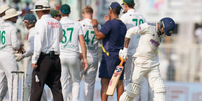 ईडन गार्डन्स पर रविवार को 124 रन के लक्ष्य का पीछा करते हुए भारतीय टीम केवल 93 रन पर ढेर हो गई। भारतीय बल्लेबाजों ने दक्षिण अफ्रीकी स्पिनर्स साइमन हार्मर, केशव महाराज और एडेन मार्करम के सामने घुटने टेक दिए।